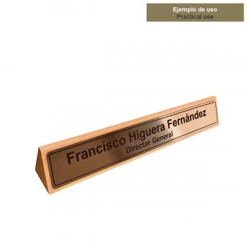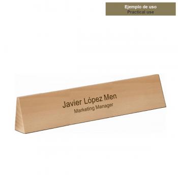 Base de madera natural de haya con diseño elegante y estable. Perfecta para señalética de mostrador, placas corporativas o reconocimientos personalizados. Su forma inclinada realza la visibilidad del grabado o impresión, aportando un toque cálido y profesional.