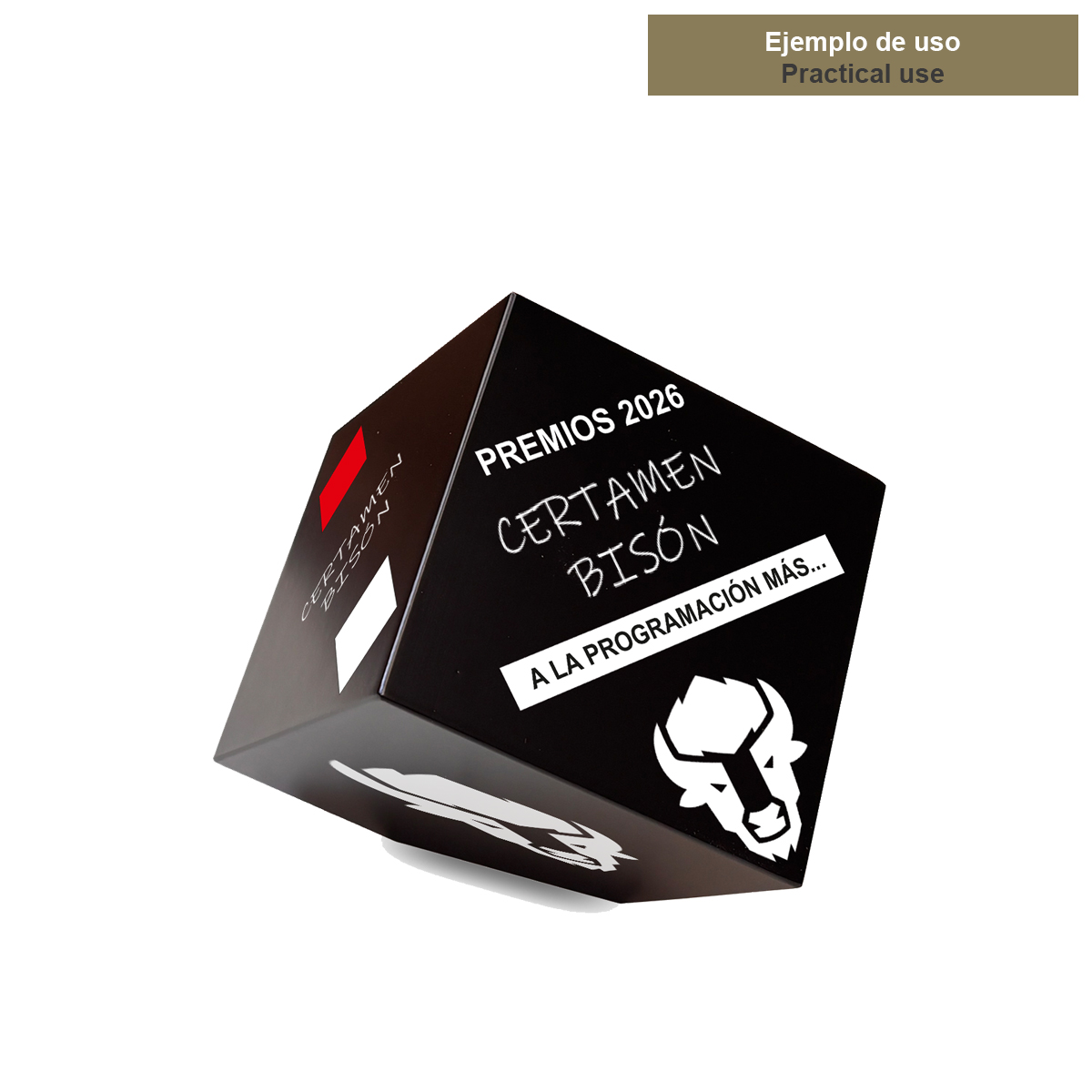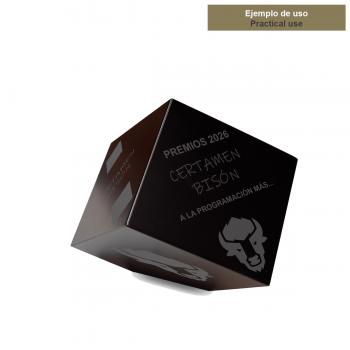 Este cubo de madera lacado en negro destaca por su acabado satinado premium y su presencia sólida y moderna. Su geometría pura lo convierte en una pieza perfecta tanto para trofeos personalizados como para elementos de señalización o decoración de sobremesa.